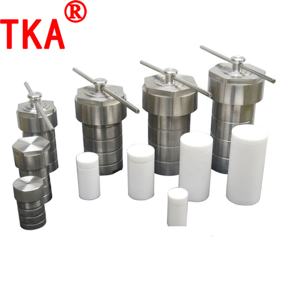 5、水热合成反应釜可替代铂坩埚解决高纯氧化铝中微量元素分析的溶样处理问题。烘箱中使用的高压消解罐,也称为溶样器、压力溶弹、水热合成反应釜、消化罐、聚四氟乙烯高压罐,是利用罐体内强酸或强碱且高温高压密闭的环境来达到快速消解难溶物质的目的。是测定微量元素及痕量元素时消解样品的得力助手。样品前处理消解重金属、农残、食品、淤泥、稀土、水产品、有机物等